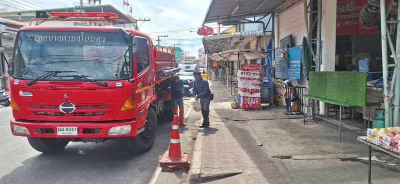 วันอังคารที่ 25 กุมภาพันธ์ 2568 เวลา 13.00 น. เทศบาลตำบลโนนสูง นำโดย นายอมรรัตน์ ปานเจริญศักดิ์ นายกเทศมนตรีตำบลโนนสูง มอบหมายให้งานป้องกันและบรรเทาสาธารณภัย และเจ้าหน้าที่กองสาธารณสุขฯ ดำเนินการนำรถน้ำออกปฏิบัติการล้างทำความสะอาด บริเวณตลาดสดเทศบาลตำบลโนนสูง