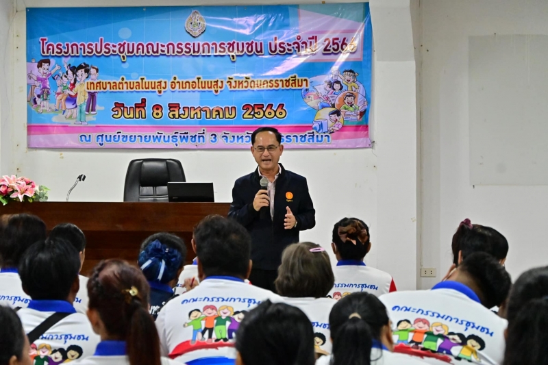 วันอังคารที่ 8 สิงหาคม 2566 เวลา 09.00 น. เทศบาลตำบลโนนสูง นำโดย นายอมรรัตน์ ปานเจริญศักดิ์ นายกเทศมนตรีตำบลโนนสูง พร้อมด้วยคณะผู้บริหาร สมาชิกสภา ผู้อำนวยการกอง คณะกรรมการชุมชน เข้าร่วมในการเปิดการประชุมคณะกรรมการชุมชน ประจำปี 2566 โดยมี นายสมชาย จันทร์อินทร์ ปลัดอำเภอ(หัวหน้ากลุ่มงานบริหารงานปกครอง)อำเภอโนนสูง เป็นประธานในพิธีเปิด พร้อมทั้งนายสมเกียรติ ตันดิลกตระกูล สมาชิกสภาผู้แทนราษฎร นครราชสีมา เขต 5 ที่ได้มาพบปะคณะกรรมการชุมชนด้วย ณ ห้องประชุมศูนย์ขยายพันธุ์พืชที่ 3 จังหวัดนครราชสีมา ตำบลโนนสูง อำเภอโนนสูง จังหวัดนครราชสีมา