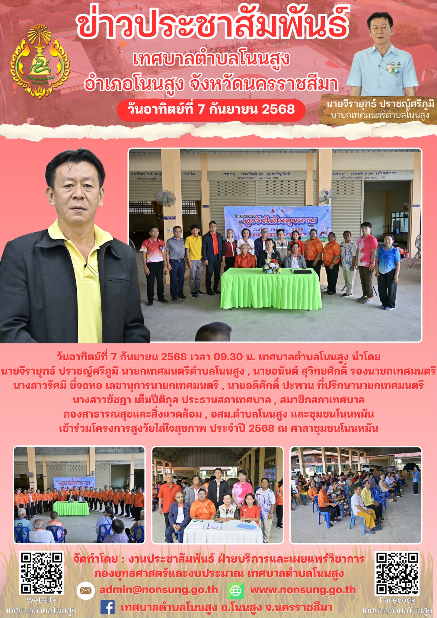 โครงการสูงวัยใส่ใจสุขภาพ ประจำปี 2568 ณ ศาลาชุมชนโนนหมัน...[วันที่ 2025-09-07][ผู้อ่าน 1]