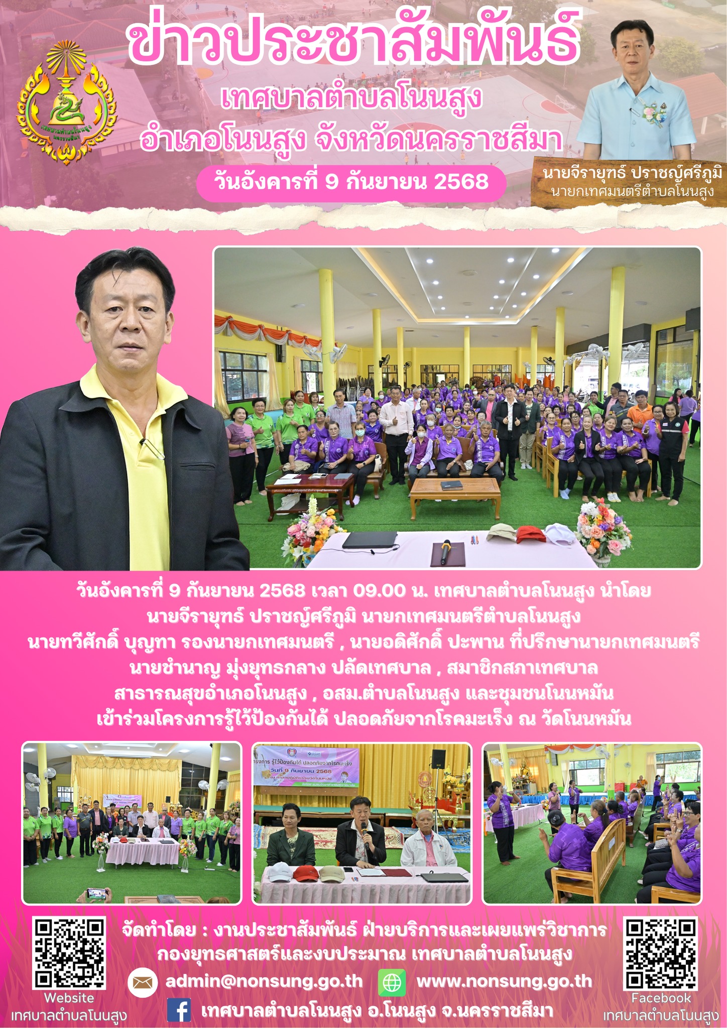 เข้าร่วมโครงการรู้ไว้ป้องกันได้ ปลอดภัยจากโรคมะเร็ง ณ วัดโนนหมัน ...[วันที่ 2025-09-09][ผู้อ่าน 1]