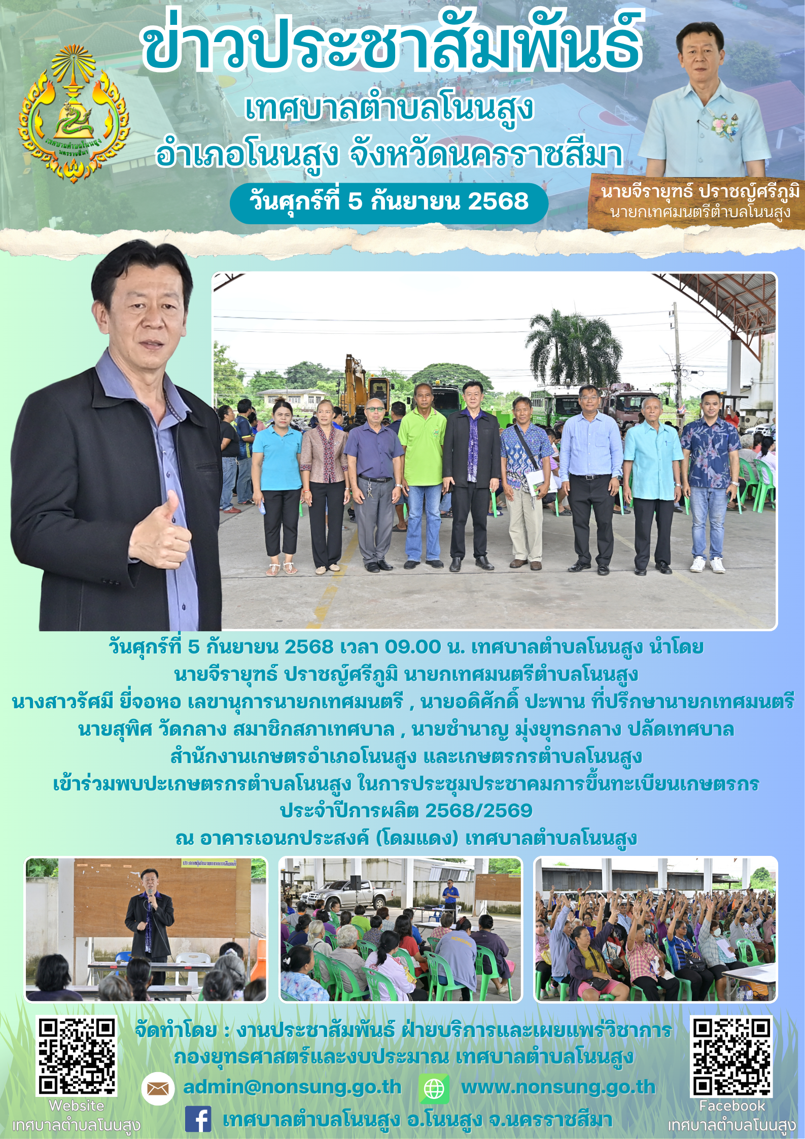 ประชุมประชาคมการขึ้นทะเบียนเกษตรกร ประจำปีการผลิต 2568/2569 ...[วันที่ 2025-09-05][ผู้อ่าน 1]