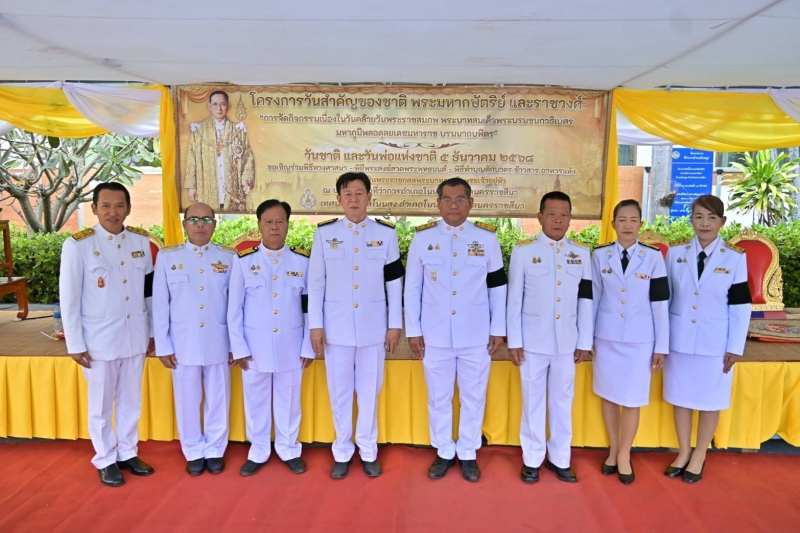 วันศุกร์ที่ 5 ธันวาคม 2568 เวลา 07.00 น. เทศบาลตำบลโนนสูง นำโดย นายจีรายุฑธ์ ปราชญ์ศรีภูมิ นายกเทศมนตรีตำบลโนนสูง พร้อมด้วยคณะผู้บริหาร , สมาชิกสภาเทศบาล , พนักงานและเจ้าหน้าที่ และหัวหน้าส่วนราชการอำเภอโนนสูง เข้าร่วมกิจกรรมพิธีทำบุญตักบาตรถวายพระราชกุศล และพิธีวางพานพุ่ม เบื้องหน้าพระบรมฉายาลักษณ์ พระบาทสมเด็จพระบรมชนกาธิเบศร มหาภูมิพลอดุลยเดชมหาราช บรมนาถบพิตร เนื่องในโอกาสวันคล้ายวันพระสมภพฯ โดยมี นายจิรเดช พงษ์ประสิทธิ์ นายอำเภอโนนสูง เป็นประธานในพิธี ณ ที่ว่าการอำเภอโนนสูง