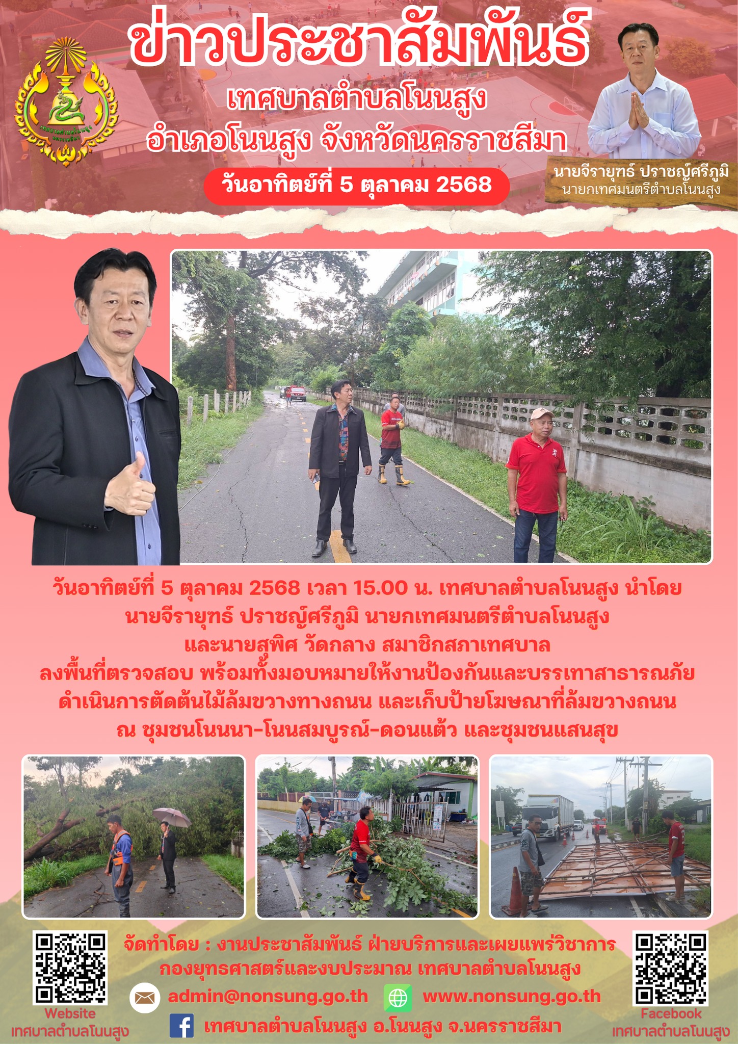 ตัดต้นไม้ล้มขวางทางถนน และเก็บป้ายโฆษณาที่ล้มขวางถนน ณ ชุมชนโนนนา-โนนสมบูรณ์-ดอนแต้ว และชุมชนแสนสุข...[วันที่ 2025-10-05][ผู้อ่าน 0]