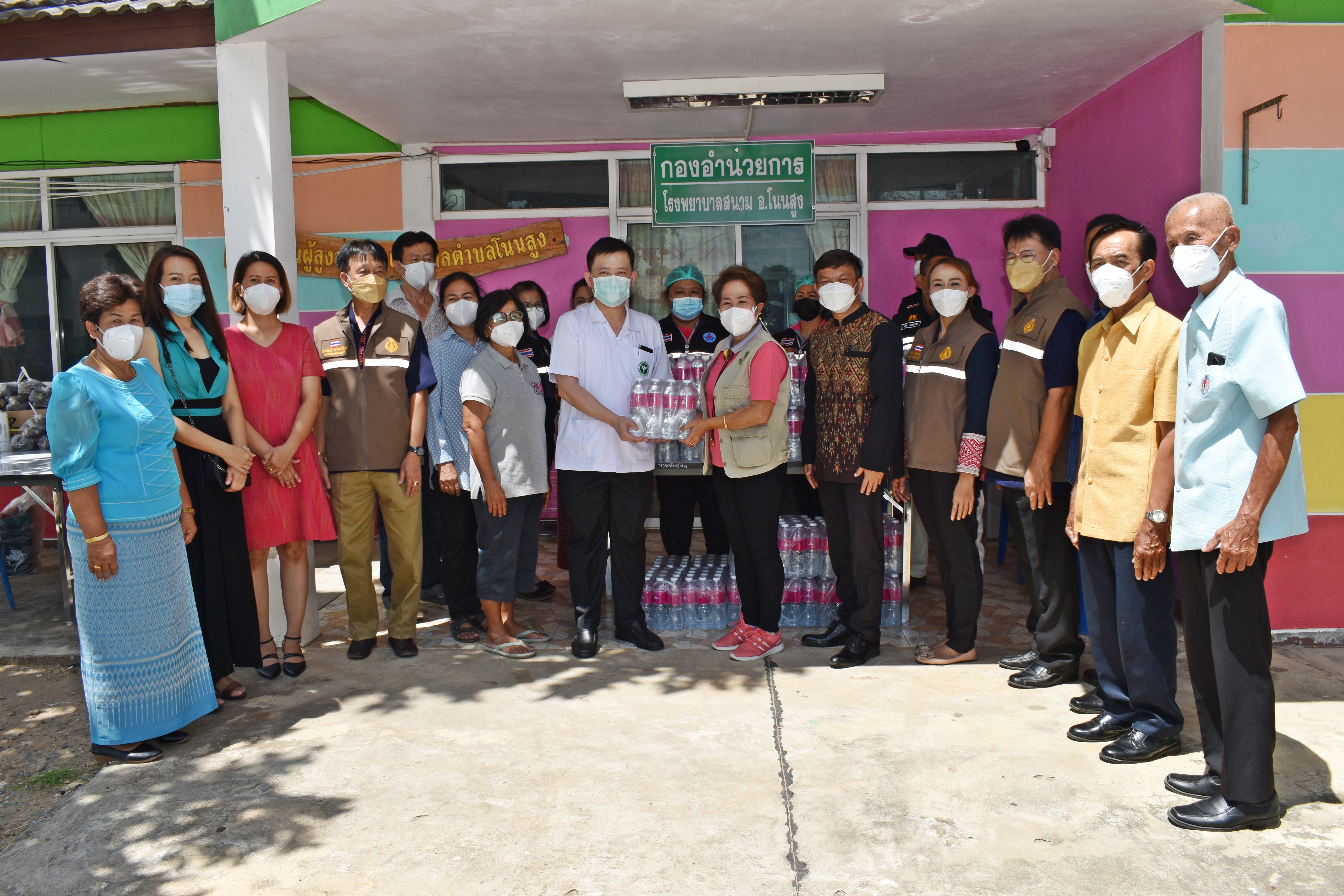 ท่านนายกฯอมรรัตน์ ปานเจริญศักดิ์ นายกเทศมนตรีตำบลโนนสูง คณะผู้บริหารเทศบาลตำบลโนนสูง ผู้อำนวยการโรงพยาบาลโนนสูง สมาชิกสภาเทศบาล รับมอบสิ่งของ จาก นางแพรวพรรณ แพงทรัพย์ และสมาชิกชมรมผู้สูงอายุเทศบาลตำบลโนนสูง สำหรับใช้ใน ศูนย์พักคอยเทศบาลตำบลโนนสูง ณ ศูนย์ขยายพันธ์พืชที่ 3 จังหวัดนครราชสีมา (ศูนย์เนื้อเยื่อ อ.โนนสูง) และโรงพยายาลสนาม (ศูนย์ CI) ในวันศุกร์ที่ 6 สิงหาคม 2564