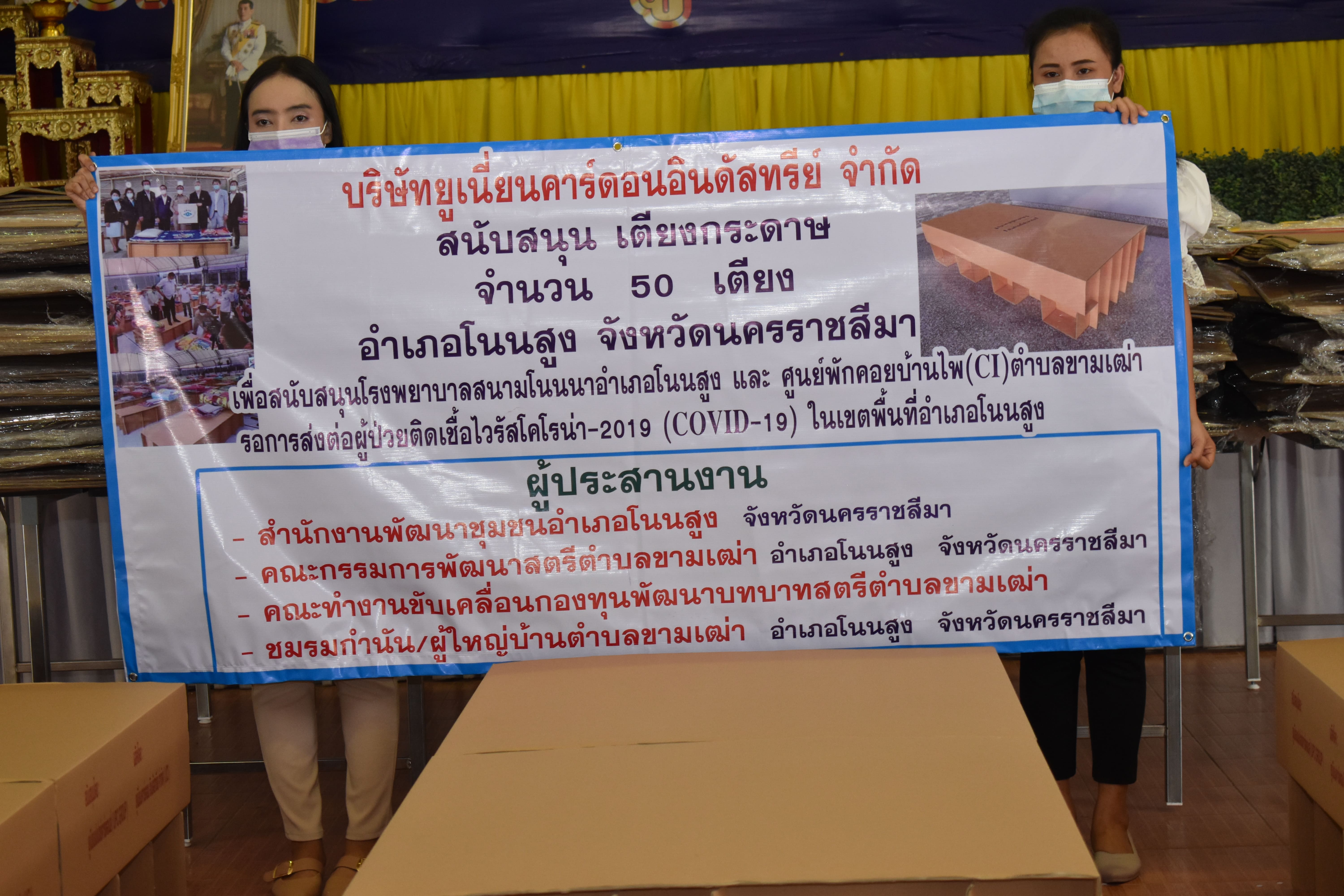 ท่านรองนายกฯชัชฎา เต็มปีติกุล เป็นตัวแทนรับมอบ เตียงกระดาษ จำนวน 50 เตียง เพื่อสนับสนุนโรงพยาบาลสนามโรงยิมฯในเขตเทศบาลตำบลโนนสูง และในเขตอำเภอโนนสูง จากบริษัทยูเนี่ยนคาร์ดอนอินดัสตรี จำกัด ...โดยนายอำเภอโนนสูงเป็นผู้รับและมอบให้กับศูนย์ CI (ศูนย์รอผู้ป่วยกลับบ้าน) ในแต่ละพื้นที่ ในเขตตำบลโนนสูง ท่านรองฯชัชฎา เป็นตัวแทนรับมอบ เมื่อวันศุกร์ที่ 13 สิงหาคม 2564